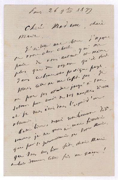 8vo. 3 pp. on bifolium. Long congratulatory letter to the wife of a friend named Charles, probably the journalist Charles Vincens, on the occation of a birth: "Que vous avez bien fait, chère Marie en lui donner cette fois un garçon ! [.]". - Traces of folds.