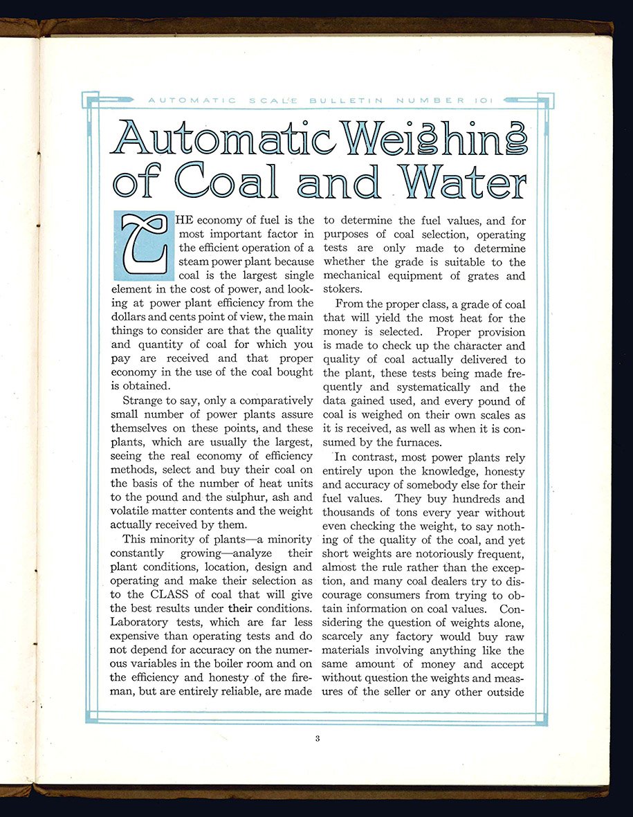 Automatic weighing of coal and water in power plants. Bulletin n^101.