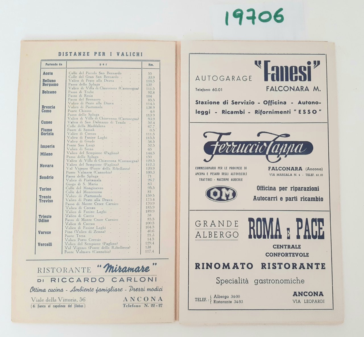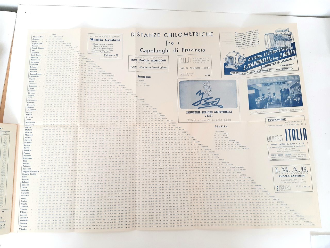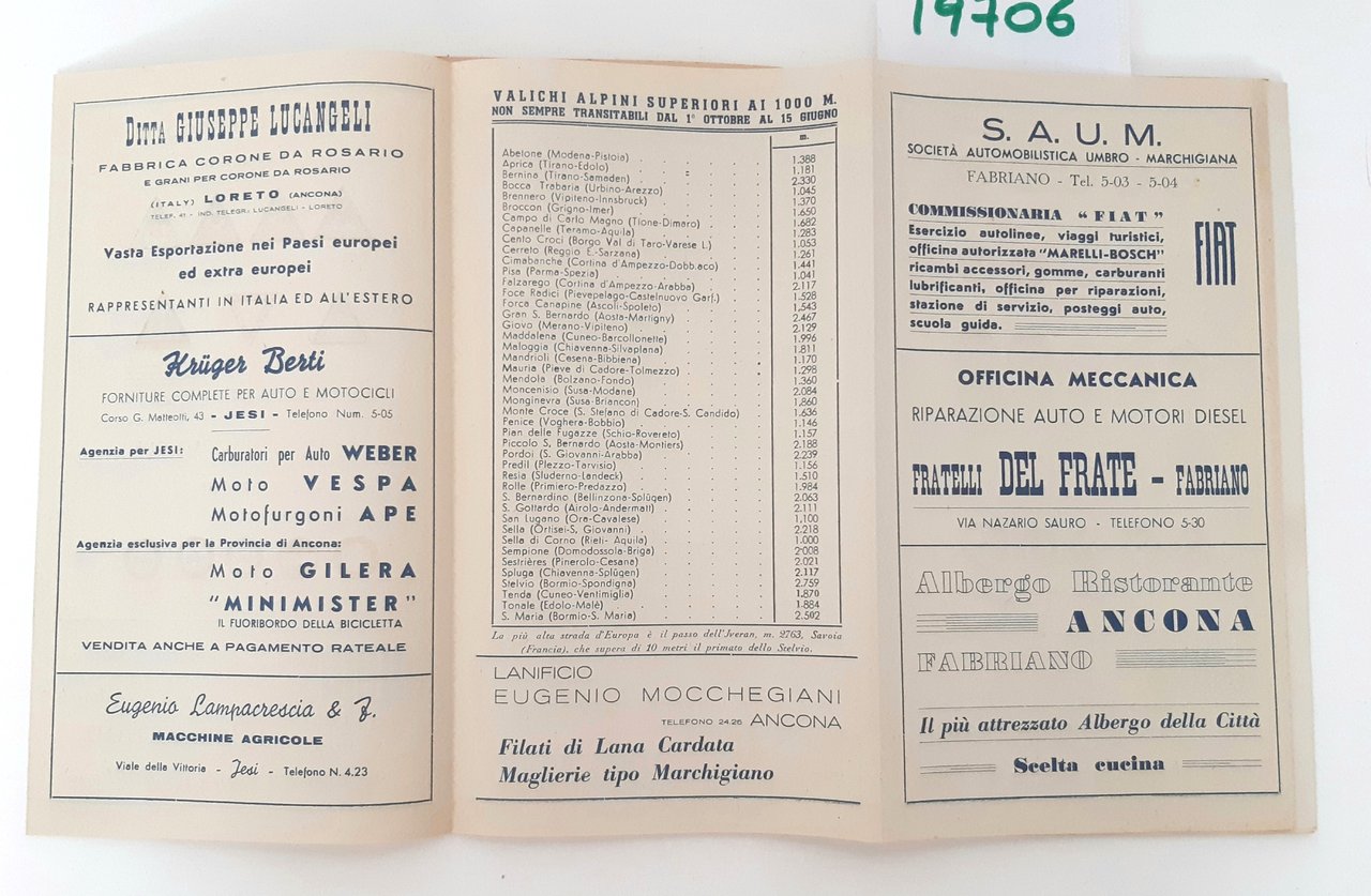 Legatura morbida editoriale con alcune sporcizie e aloni ai piatti, all'interno due pieghevoli uno con pubblicità e segnaletica di pericolo l'altro con tabella con distanze chilometriche fra i capoluoghi di provincia dimensioni della tabella centimetri 60 * 44, dimensioni dell'opuscolo cm 22 * 12,6
