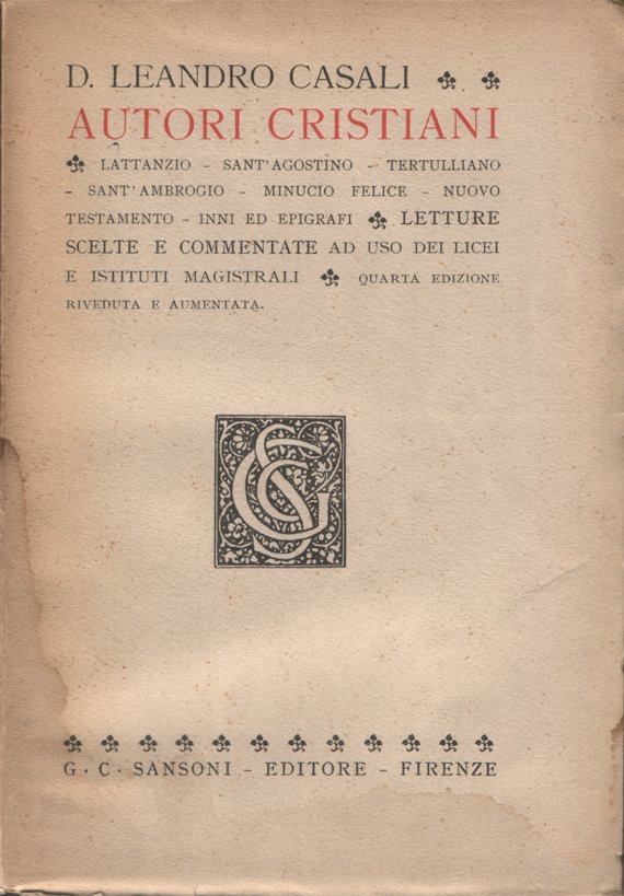 Autori cristiani. Lattanzio, Sant'Agostino, Tertulliano, Sant'Ambrogio, Minucio Felice, Nuovo Testamento, inni ed epigrafi. Letture scelte e commentate ad uso dei Licei e Istituti Magistrali. Quarta edizione riveduta e aumentata