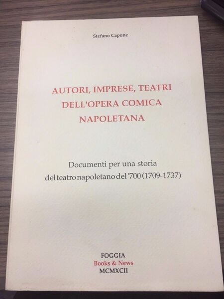 Documenti per una storia del teatro napoletano del '700 (1709-1737). Foggia. Book & News 1992, 8°, pp. 218. Bross.