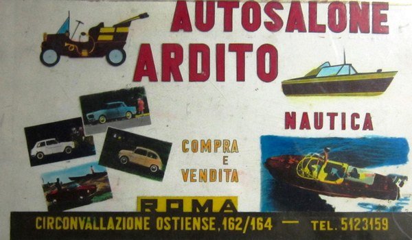 Autosalone Ardito Nautica, compra e vendita. Roma Circonvallazione ostiense. Targa pubblicitaria in acetato.
