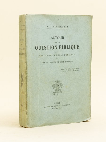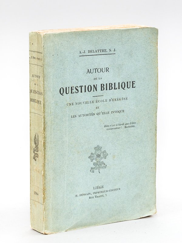 1 vol. in-12 br., H. Dessain, Liège, 1904, IV-384 pp. Bon état. Rare exemplaire de cet ouvrage peu commun, par un maître de l'exégèse.