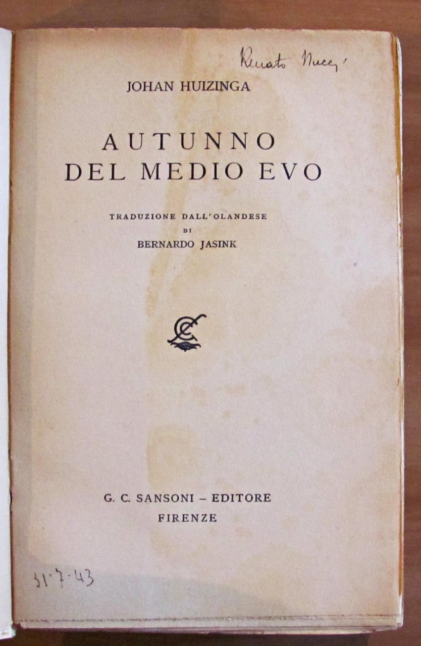 AUTUNNO DEL MEDIO EVO - Collana Biblioteca Storica Sansoni