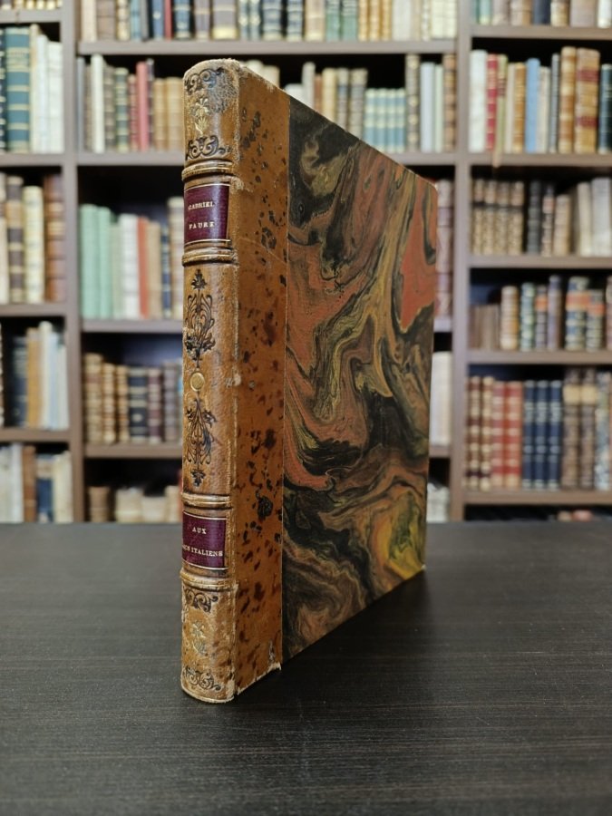 In-8° (cm. 20,5), legatura coeva in mezza pelle, <span style="font-size: 13.333333px;">dorso a finti nervi </span>con titolo in oro su tasselli marocchino e fregi di fiori e foglie in oro e a secco ai comparti (lievi tracce d'uso), piatti e risguardi marmorizzati, taglio superiore dorato; conservata la brossura editoriale a stampa con titolo in rosso e nero; pp. 142 [2] in ottimo stato. Opera riccamente ornata con 150 illustrazioni in eliografia nel testo. Ottimo esemplare. NX