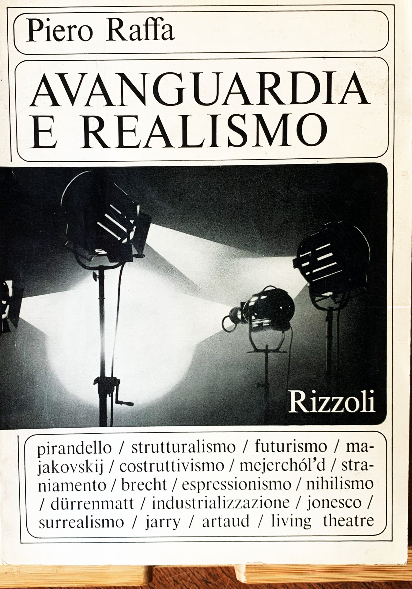 I ed. della raccolta (maggio 1967). VIII/ 304/ brossura in cartoncino bianco patinato con titoli in nero ed illustrazione fotografica in b/n al primo piatto (4 fari teatrali accesi). Stato discreto (copertina leggermente brunita al dorso e ai margini - pagine brunite, in particolare ai margini - parecchie sottolineature e segni a margine a penna nera - appunto a penna nera a p. 304, pagina non stampata). Indice: Avvertenza - La crisi del loinguaggio naturista: Pirandello (Avvertimenti di metodo - L'incrinatura - Quale ambiguità - Due letture - L'attualità di Pirandello) - Alle origini dell'avanguardia: Jarry (voluttà di épater - L'arte e la vita - Avanguardia e arte popolare - Ubu e basta - Il primato dell'immaginazione - Il realismo dell'immaginazione - Senza catarsi) - Futurismo e utopia socialista: Majakovskij (Tra leggenda e conscenza - L'intesa M-M - Futurismo tematico - Linguaggio dell'utopia - Utopia e conoscenza - Storia "ambigua" di una cimice - Utopia "negativa" e "straniamento" - Arte d'avanguardia e pubblico di massa) - La rivoluzione costruttivista e la poetica teatrale di Majakovskij-Mejerchól'd (Un'esperienza fondamentale - L'idea costruttivista - Una collaborazione congeniale - Un esito realistico) - Brecht contro Lukács (Due mentalità - Difficoltà scientifiche - Origini del teatro epico - Espressionismo uno e due - Esperienze decisive - Linguaggio, atteggiamento, mentalità - Le risporse del nihilismo - Maturità con moderazione - Prospettiva senza realismo - Il vero e il falso Brecht --- Premessa - "Saggista" ma non troppo - Dal tragico all'epico - L'incontro col demiurgo - Alfin le amate sponde... - La restaurazione del classico - I nodi al pettine - Hegel e Galileo --- Appendice n. 1: Un "pastiche" brechtiano --- Appendice n. 2: Uno spettacolo del Berliner Ensemble) - Neo-avanguardie e sviluppo industriale (Avanguardia e tradizione - Discorso paradossale - Moralismo nihilista - Il dono di Clara Zachanassian - Nihilismo e realismo - Dürrenmatt e Brecht - Jonesco e la tradizione - Riscoperta di Artaud) - Sul concetto del realismo artistico (Ancora "realismo" - Gli ideali e la scienza - Noi e l'Ottocento - Avanguardia e semiologia - Naturalismo e realismo - Realismo "stretto" - La "realtà" esiste - L'arte non è conoscenza - Conoscenza "arcaica" - Sulla verificazione - Apparenza e realtà - Quale realtà? - Conoscenze e valore artistico - Realismo e ideologia - Arte "impegnata" e utopismo - Il valore del realismo - Limiti strutturali dei segni).