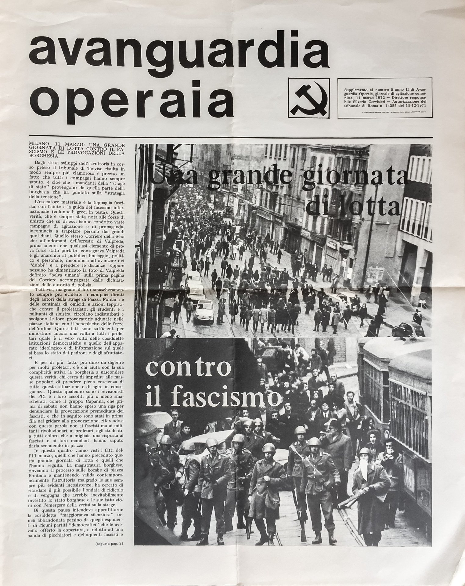 Numero speciale interamente dedicato alla manifestazione di Milano dell'11 marzo 1972, finita con violente cariche della polizia e la morte di un pensionato - Giuseppe Tavecchio - colpito da un lacrimogeno sparato ad altezza d'uomo. Indetta dal Comitato Nazionale di Lotta contro la strage di Stato, la manifestazione rimase famosa anche perché vi fece la sua prima comparsa la "Maggioranza silenziosa".