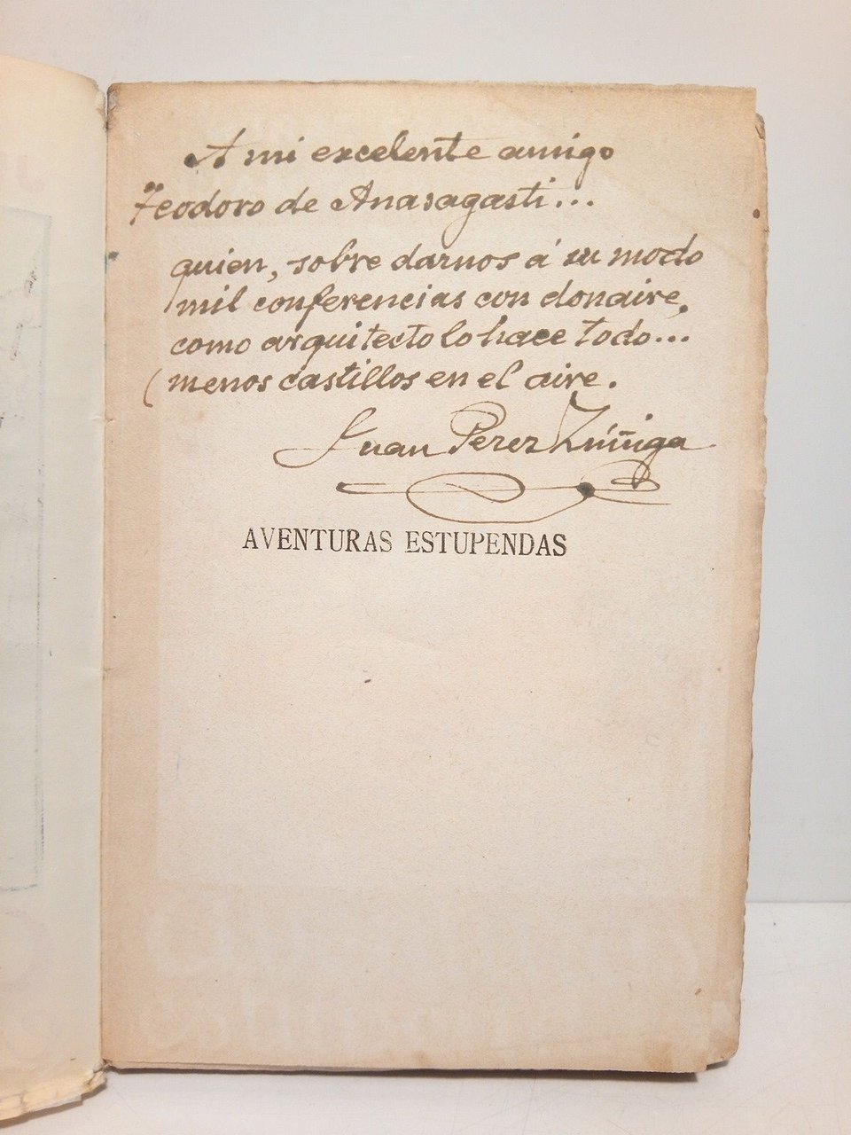 [PRIMERA EDICION].- Madrid: Renacimiento, [ca. 1921].- 287 p., [2 h.]: Con ilustraciones entre el texto; 8º (19 x 13 cm); Rústica Ed. ilustrada en colores por Zúñiga.- (Obras Completas de Juan Pérez Zúñiga. VI).* En la portadilla leva una dedicatoria autógrafa de Pérez Zúñiga.A mi excxelente amigo Teodoro Anasagasti.Sigue firma y rúbrica. En el margen superior de la portada firma y fecha de Teodoro Anasagasti. LITERATURA Y FILOSOFÍA ESPAÑOLAS DE LOS SIGLOS XIX-XXI Y SU HISTORIA EN GENERAL
