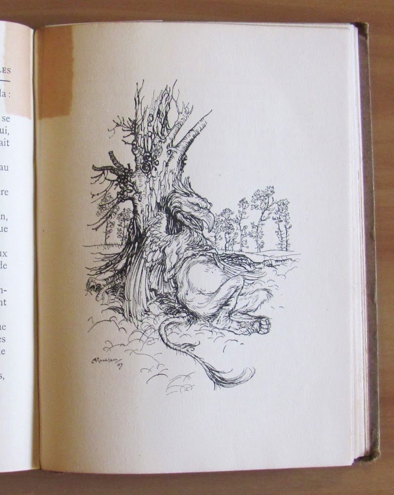 Capilettera e illustrazioni in b/n n.t. e f.t., sguardie virate in verde e 13 tavole a colori f.t., inclusa la tavola in antiporta, tutte protette da velina parlante, di Arthur Rackham. Librairie Hachette - Paris, s.d. ma 1907. Tela editoriale con illustrazioni e titoli al piatto e al dorso, piatti molto scoloriti e minime imperfezioni ai margini esterni delle copertine e del dorso. Dedica del tempo alla prima pagina. Una decina di pagine presentano l'ombratura di un vecchio segnalibro che ha lasciato una traccia brunita in alto alla cerniera. Peraltro interno freschissimo e pulito. 16x21; pp.167. Molto Raro e in Buonissimo stato. , Molto buono (Very Good)