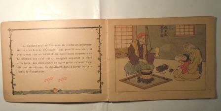 Stampato a Parigi, s. d. (primi del novecento) Legatura con cordoncino. Con 12 belle illustrazioni a colori a piena pagina di R. Isayama. Formato cm 18 x 14; pp. 28 non numerate. Su carta forte. Testo in francese. Ottime condizioni, ben conservato.