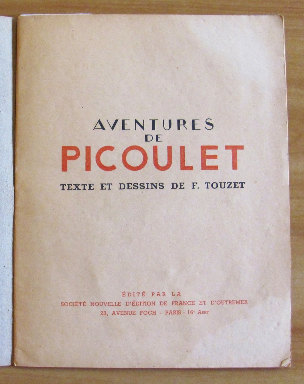 Copertina e illustrazioni a colori a tutte le pagine di F. Touzet. Edité par la Société Nouvelle d'Edition de France et d'Outremer - Paris, anni '40. Cartoncino editoriale. 20,5x27; pp.24 non numerate. Raro e in Ottimo stato. , Ottimo (Fine)