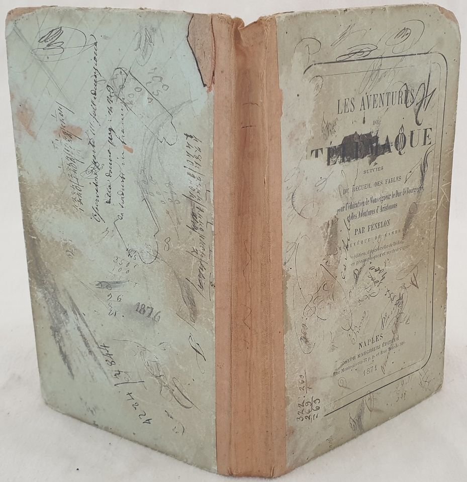 Edizione del 1871 del noto romanzo dello scrittore e religioso francese Fenelon (Francois de Salignac de la Mothe) (1651-1715). L'opera è in un volume ed è completo. L'opera, pubblicata per la prima volta nel 1699, è una critica alla politica di Luigi XIV. Antiche note manoscritte. In discrete condizioni. Copertina cartonata editoriale in mezza tela in discrete condizioni generali con usure ai margini e dorso. Legatura in mediocri condizioni con rotture. All'interno le pagine si presentano in buone condizioni con rare fioriture. In 8. Dim. 19x11,5 cm. Pp. 376.Edition of 1871 of the famous novel by the writer and religious man Fenelon (Francois de Salignac de la Mothe) (1651-1715).<BR>The work is in one volume and it is complete. The work was published for the first time in 1699 and was a critic to the politic of Louis XIV.<BR>Antique handwritten notes. In fair conditions. Carton editorial half cloth cover in fair general conditions lightly worn in the extremities. Binding in poor conditions with cracks. Inside pages are in good conditions with occasional foxing. In 8. Dim. 19x11,5 cm. Pp. 376.