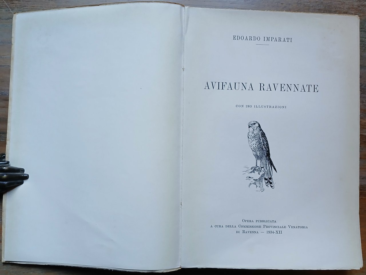 In 8°, brossura editoriale con al piatto anteriore titoli e disegno in nero e rosso, pp. 314,(4), con 283 illustrazioni in nero nel testo. Opera pubblicata a cura della Commissione Provinciale Venatoria di Ravenna. Stato di conservazione molto buono, volume intonso.