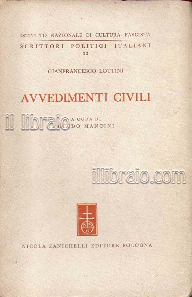 in 8°; pp. 296; br.; coll. Scrittori Politici Italiani, # 22 A cura di G. Mancini. Riflessioni dell'autore, politico del '500, al servizio di Cosimo I volume appartenente all'opera dell'Ist. Nazionale di Cultura Fascista