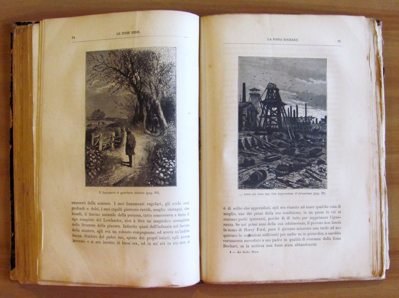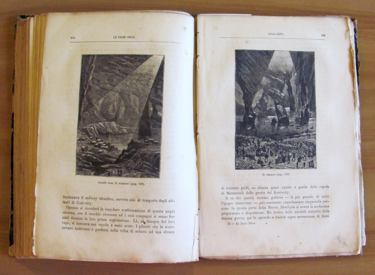 Collana Viaggi Straordinari. 54 incisioni e una carta geografica al primo titolo e 45 al secondo di Ferat. Tipografia Editrice Lombarda - Milano, I edizione s.d. al primo titolo e 1877 al secondo. Rilegatura coeva in mezza pelle, vissuta, con titoli in oro al dorso. Un'imperfezione della legatura al centro della cerniera anteriore crea il taglietto centrale visibile al frontespizio. Entrambi i frontespizi hanno firme di vecchia appartenenza. La carta si presenta leggermente brunita dal tempo ma entrambi i titoli sono freschi e perfettamente fruibili. 18,5x27; pp.202+191. Raro e in Buonissimo stato.
