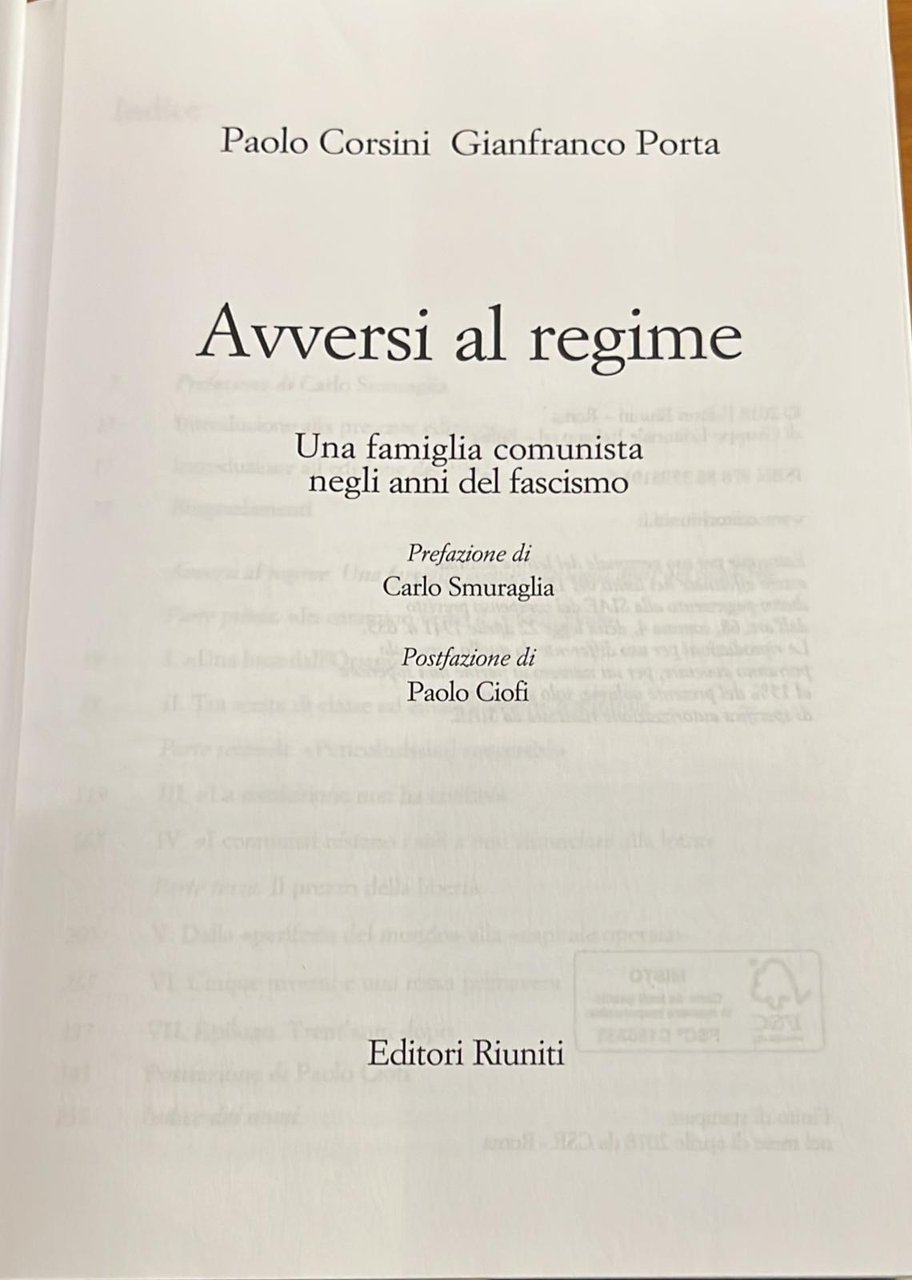 Avversi al regime- Una famiglia comunista negli anni del fascismo.
