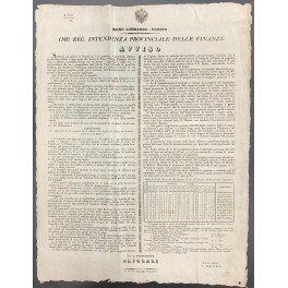 Avviso. Imp. Reg. Intendenza Provinciale delle Finanze. In vista della scadenza del contratto d'affitto novennale degli Edifici Regi adibiti a Sega viene indetta un'asta per riassegnare l'affitto