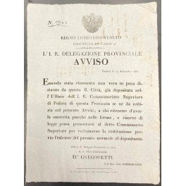 Avviso. L'I. R. Delegazione Provinciale. Con il presente avviso si comunica lo smarrimento di una fede per restituirla al proprietario