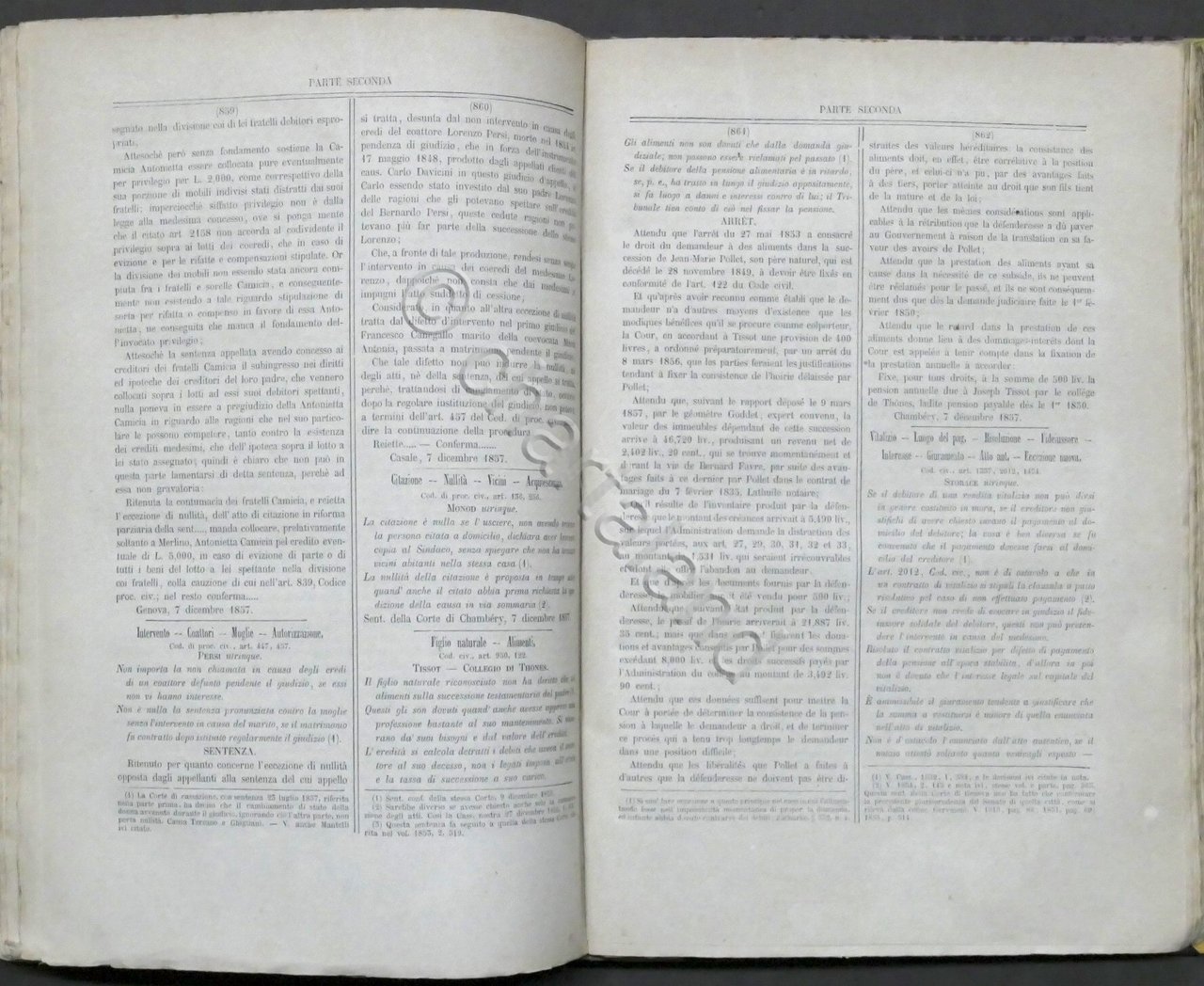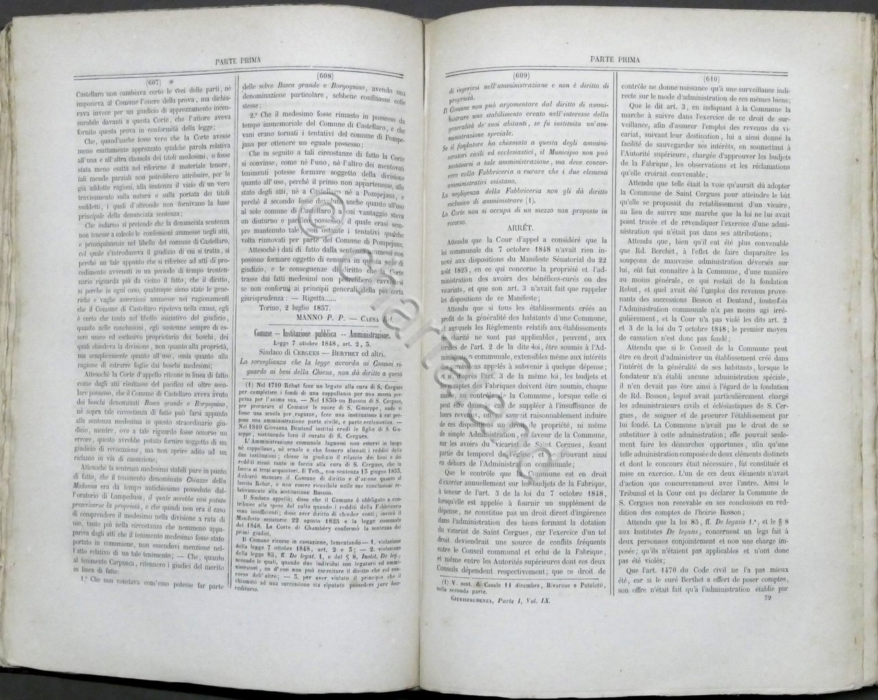 Giurisprudenza degli Stati Sardi - Raccolta generale progressiva di giurisprudenza, legislazione e dottrina compilata dall'Avvocato Filippo Bettini e da altri giureconsulti - , Anno 1857
