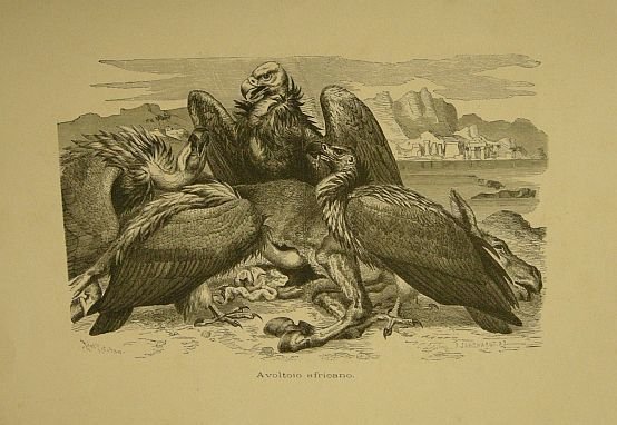 Avvoltoio africano. Tratto da "La vita degli animali" di A.E. Brehm. Seconda edizione sulla terza tedesca a cura del Prof. M. Lessona.