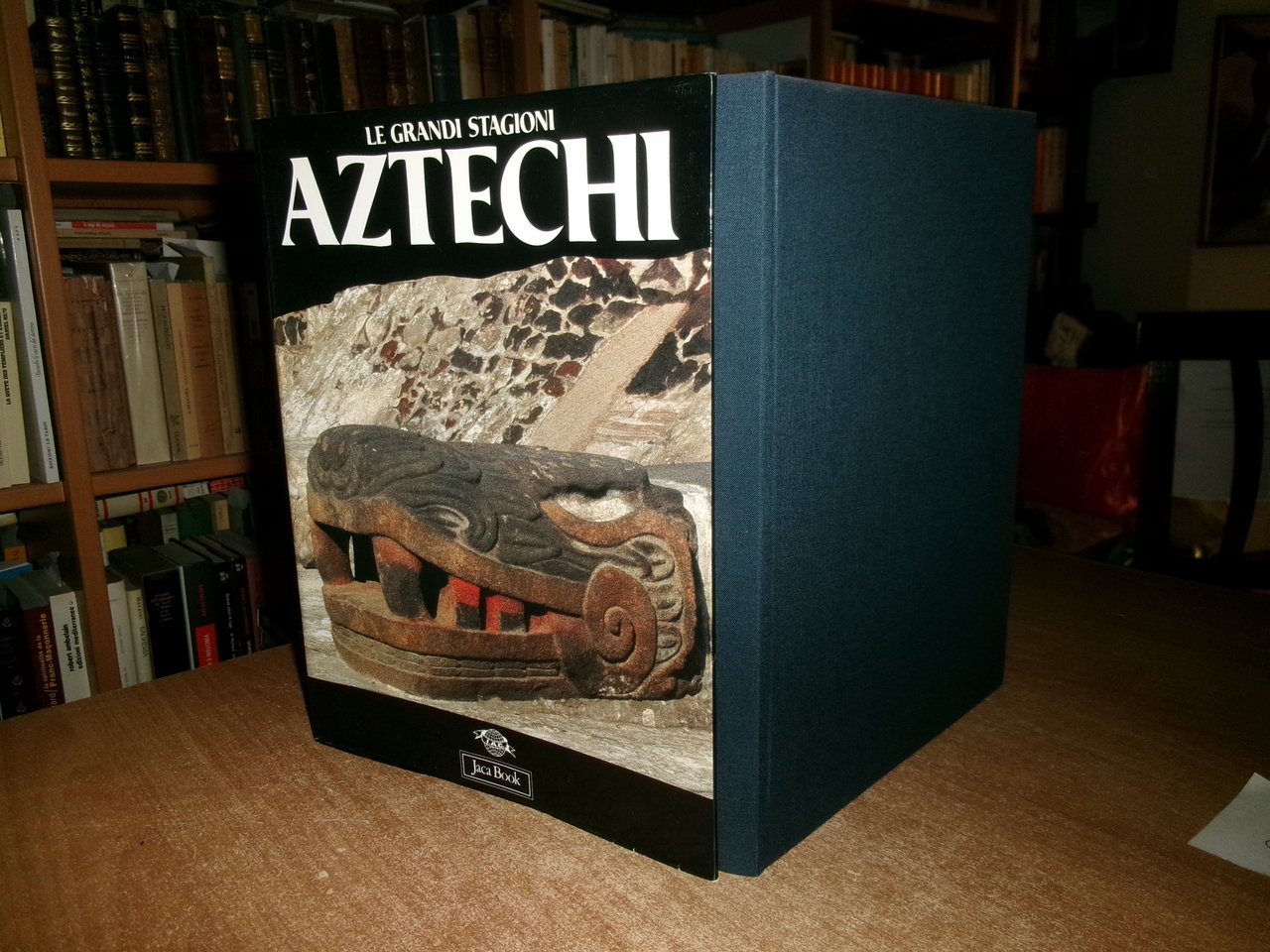 Eduardo Matos Moctezuma. Milano, Edizione speciale per Jaca Book, 1990. AZTECHI. In-4°, tela edit. bleu con sovracopertina ill. a col. 238, (1) pp. con numerose illustrazioni a colori e in bianco e nero. n.t. anche a piena e doppia pagina. Come nuovo. Uff. C - III - 3 - 2