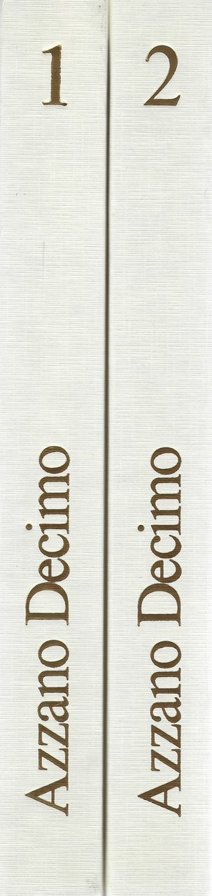 Legature editoriali in tutta tela bianca con titoli dorati ai piatti anteriori e ai dorsi.