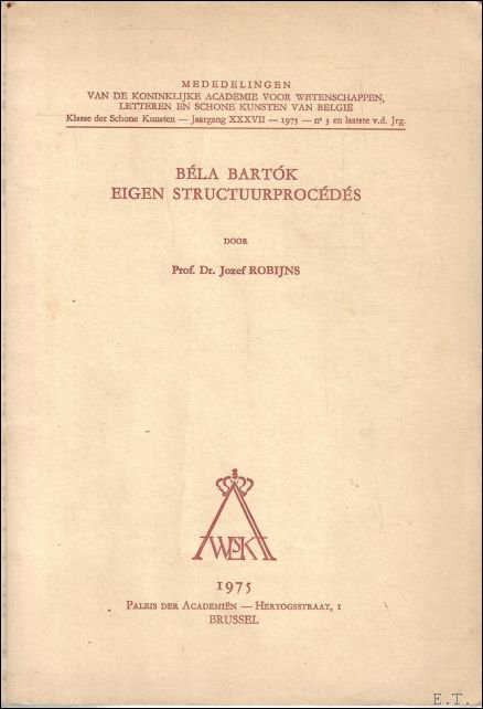 Oorspronkelijk uitgevers omslag, 30 pp. nr 3. Prof. Dr. J. Robijns: ?B la Bart k. Eigen structuur-proc d s?. Mededelingen Kon. Acad. Wet. Lett. en Kunsten, jaargang XXXVII, n 3