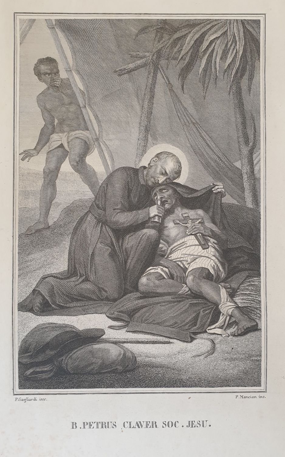 Incisione su acciaio del 1860 circa che mostra il Beato Pietro Claver (1581-1651) missionario in Africa. Autore: P. Mancion su disegno di P. Gagliardi Data: 1860 circa Dimensioni foglio: mm 345x230. Dimensione incisione al margine: mm 195x130. In buone condizioni.Incisione su acciaio del 1860 circa che mostra il Beato Pietro Claver (1581-1651) missionario in Africa Autore: P. Mancion su disegno di P. Gagliardi Data: 1860 circa Dimensioni foglio: mm 345x230. Dimensione incisione al margine: mm 195x130. In buone condizioni.Steel print of 1860 circa showing the blessed Pietro Claver (1581-1651) missionary in Africa. Author: P. Mancion after P. Gagliardi Date: 1860 circa Size of the page: mm 345x230. Size in the print: mm 195x130. In good conditions.