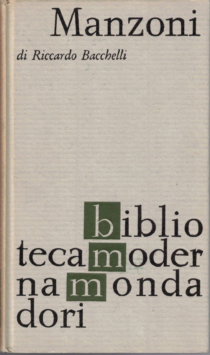 Riccardo Bacchelli, Manzoni. Commenti letterari, Arnoldo Mondadori Editore, s.l. (ma stampato a Verona, presso le Officine Grafiche della Arnoldo Mondadori Editore) 1964, prima ed., pp. 153, cm 19, cart. ed. con titoli al dorso e al piatto. Collana Biblioteca moderna Mondadori. Sezione Critica Saggistica, vol. 794. Indice: L’Adda ha buona voce – Chi era costui? - Un libro su Manzoni – L’Innominato – La biblioteca di Manzoni – Sul Manzoni storiografo – A. Manzoni: Opere – Natale con Alessandro Manzoni – Maria Amolyntos e Gesù Anapesòn – Il traghetto di Renzo sull’Adda – La braveria di Ghiaradadda. Piccola firma d’appartenenza al frontespizio. Minima brunitura del dorso e della carta, per il resto esemplare molto ben conservato.