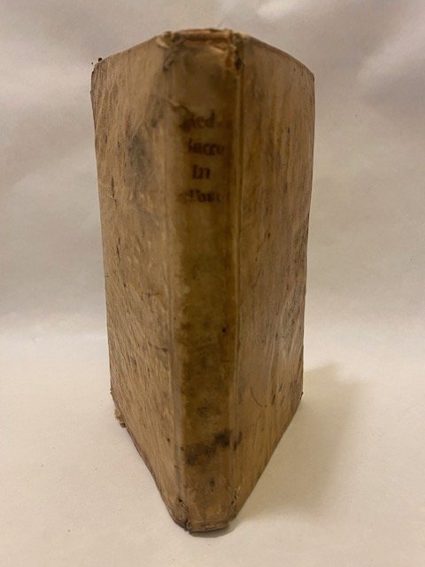 Legatura coeva in tutta pergamena semirigida e titolo calligrafato al dorso, esemplare in buone condizioni qualche macchietta alle prime carte. Piacevole poema giocoso in 980 versi in lode di Bacco e dell'amata Arianna, con l'eleogio del vino in genere e dei vini toscani in particolare. In questa edizione settecentesca, della famosa opera di Redi uscita per la prima volta nel 1685, è presente anche il pometto in ottava rima "delle Viti e del Vino" tradotto da Tirsi Albeno e una divertente raccolta di 150 brindisi di Giovan Battista Monti, per feste comandate, nozze ed altre occasioni. Sc. D.