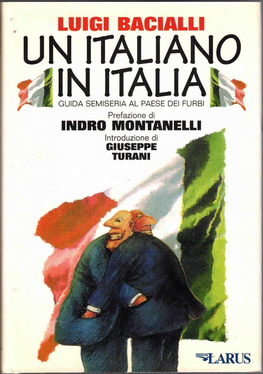Luigi Bacialli, Un italiano in Italia. Guida semiseria al paese dei furbi, Larus (Edizioni Larus S.p.A.), Bergamo 1996, pp. 268, cm 22, cart. ed. con titoli al dorso, titoli e ill. col. al piatto e sovraccoperta. Prefazione di Indro Montanelli. Introduzione di Giuseppe Turani. Lievi tracce d’uso alla sovraccoperta, minima ingiallitura della carta, per il resto ottimo esemplare.