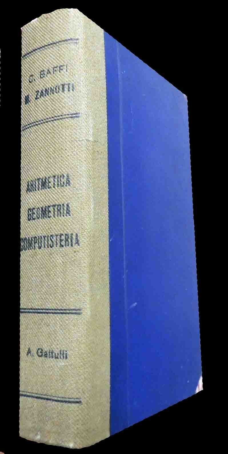 Contardo Baffi, Aritmetica Pratica Geometria e Computisteria. Ad uso delle Tre Classi Integrative di Avviamneto Professionale. Approvato dalla Commissione Ministeriale per le Classi Integrative Agosto 1926, G. B. Paravia e C., Torino 1928, terza ed. migliorata, pp. 368, ill. b.n., cm 21, legatura coeva in mezza tela con titoli al dorso e angoli in carta marmorizzata. Legato con: Elementi della scienza del calcolo per M. Zannotti. Prima parte. Elementi di aritmetica, presso Giovanni di Luggo Editore, Napoli 1861, quinta edizione riveduta e corretta dall’autore, pp. XII, 233. Conservata la brossura originale dell’opera del Baffi. Dell’opera di Michele Zannotti (San Severo, 1803 - Napoli, 1874) è presente solo la Prima parte. Firma d’appartenenza alla prima di copertina della prima opera e all’occhiello della seconda. Leggere tracce d’uso e qualche sopradico segnetto di lapis all’opera del Baffi, minime fioriture, per il resto ottimo insieme, perfetto il Zannotti.