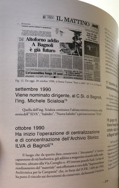 Soggetti: Fotografia, Collezioni, Cataloghi, Ex-fabbriche, Acciaieria, Napoli, Documenti, Fotografie, Storia locale, Genealogia, Mezzogiorno, Sud, Maestranze, Operai, Produzione, Dismissione, Bagnoli, Nascita, Origini, Campi Flegrei, Industria, Ottocento, Novecento, Cantiere, Colmata, Siderurgia, Tariffe doganali, IRI, FINSIDER, Cicli, Stabilimento, Crisi, Dopoguerra, piano Sinigaglia, Boom, Miracolo economico, Taranto, Sindacati, Politica, Gioia Tauro, Area a caldo, Treno Nastri TNA, Terziario, Bonifica, Ciclo integrale, Chiusura, Mario Hubler, Bibliografia, Collezionismo, Immagini, Ermanno Rea, Vincenzo Buonocore, Città della scienza, Coroglio, Lamont Young, Il Mattino, Scarfoglio, Matilde Serao, Francesco Saverio Nitti, Legge Gianturco, Riva, Ansaldo, Eternit, FIAT, Pozzuoli, Michele Scialoia, Pontile, Photographs, Collections, Catalogs, Ex-factories, Steelworks, Naples, Documents, Photographs, Local History, Genealogy, Southern Italy, Workshops, Workers, Production, Disposal, Bagnoli, Birth, Origins, Phlegraean Fields, Industry, Nineteenth Century, Twentieth Century, Construction Site, Colmata, Iron and Steel, Customs Tariffs, Cycles, Establishment, Crisis, Postwar Period, Economic Miracle, Taranto, Trade Unions, Politics, Hot Area, Train Tapes, Tertiary, Reclamation, Integral Cycle, Closure, Bibliography, Collectibles, Images, City of science, Libri Vintage Fuori catalogo, Libri illustrati, Pozzuoli, Napoli, Stabilimenti operai, Circolo operaio, Smantellamento, Fabbrica, Acciaio, Produzione, De-industrializzazione, Books Out of print, Illustrated books, Naples, Factory workers, Workers' club, Dismantling, Factory, Steel, Production, De-industrialization, Pontile, Pier, Wharf