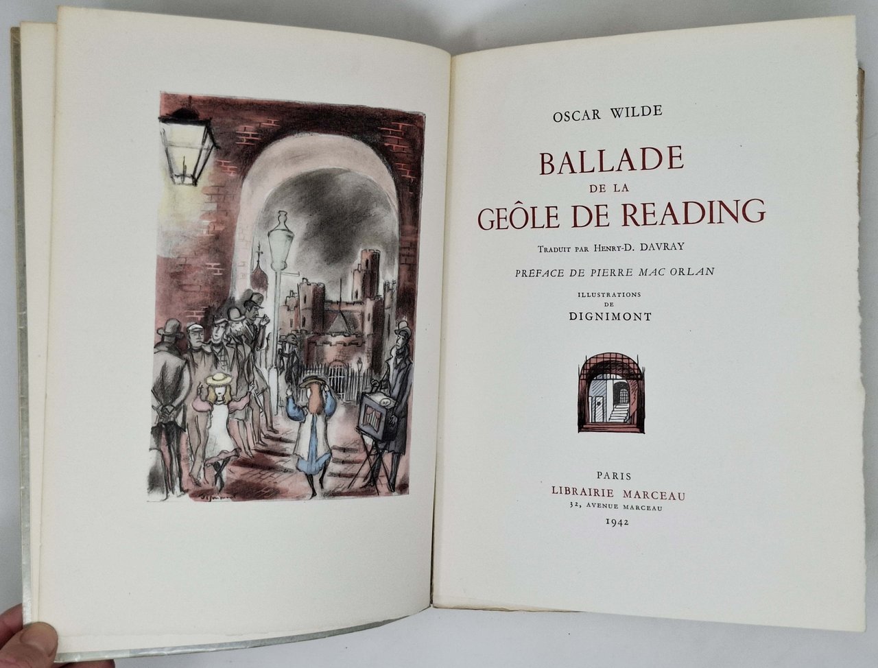 Traduit par Henry-D. Davray. Preface de Pierre Mac Orlan. Illustrations de Dignimont. Les aquarelles ont été reproduites en phototypie par Duval et coloriées par Reynal. Opera a tiratura limitata di 1200 esemplari numerati. Esemplare numero 230 (uno dei mille sur velin d'Arches). Opera finita di stampare a Parigi il 15 febbraio 1942. Lingua del testo: francese. Pagine: 69 + [5]. Formato: 19,5 x 25,5 cm circa. Stato di conservazione: sono stati applicati 4 piccoli pezzetti di nastro adesivo trasparente sulle giunture interne della camicia in carta velina (il nsatro adesivo però non tocca nè la sovraccoperta ne la copertina ma esclusivamente la camicia trasparente) ma, nel compelsso, un esemplare ottimamente conservato (molto fresco, pari al nuovo). Brossura editoriale con sovraccoperta e camicia in carta velina trasparente. Meravigliose le illustrazioni a colori, di André Dignimont, a corredo dell'opera. Edizione originale.