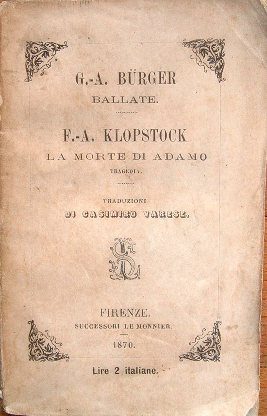 Ballate di G.-A. Bürger. La morte di Adamo. Tragedia di F.-A. Klopstock. Traduzioni di Casimiro Varese