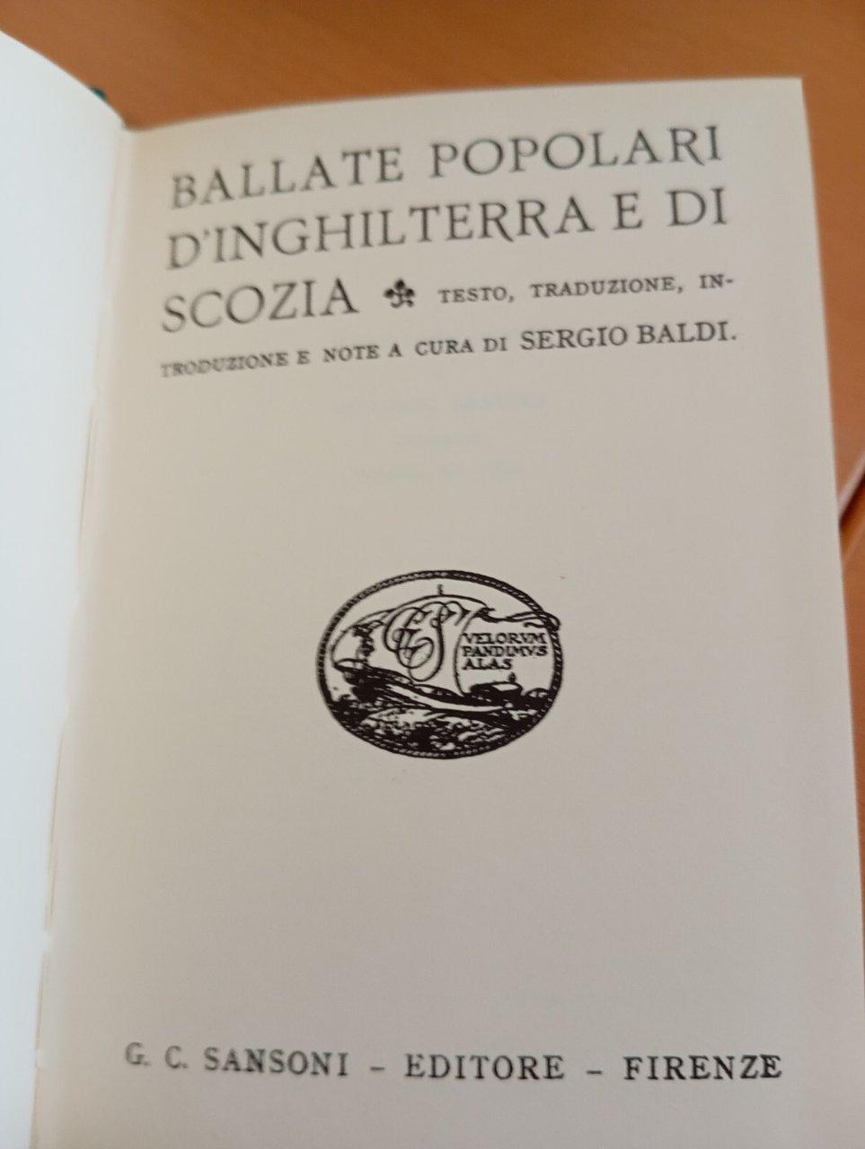Ballate popolari d'Inghilterra e di Scozia, Sergio Baldi, Sansoni, 1946