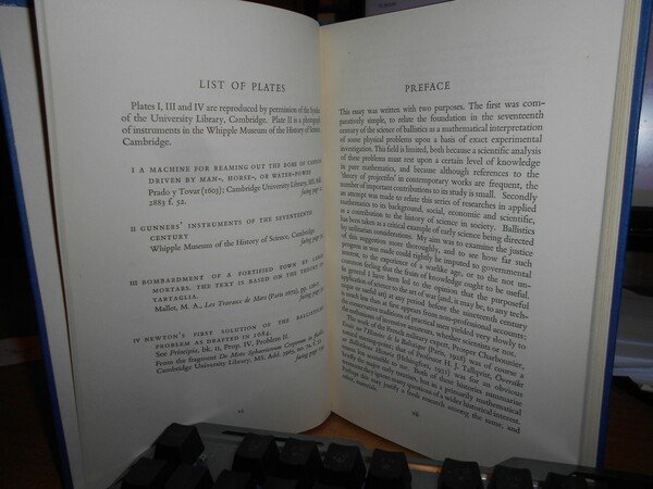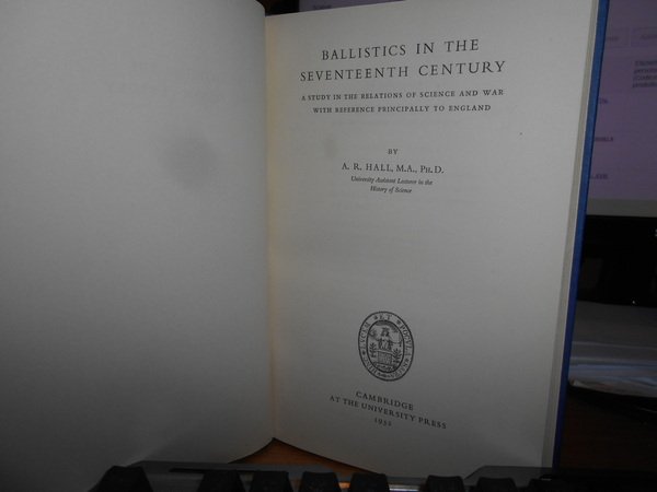 A.R. HALL. Cambridge at The University Press, 1952. BALLISTICS in The Seventeenth Century. A Study in the relations of Science and war with reference principally to England. In-8°, tela bleu con titolo in oro al dorso. viii, 186 pp. co 4 tavole fuori testo. In ottimo stato di conservazione. Uff. C - I - 7