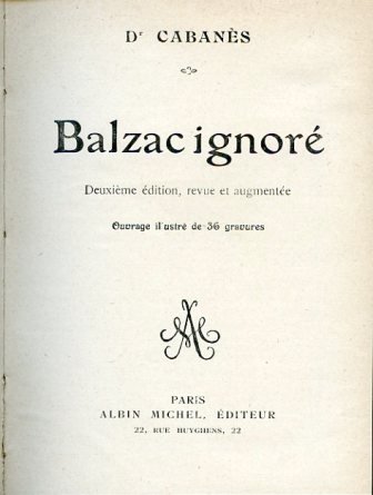 Balzac ignoré. Deuxième édition, revue et augmentée. Ouvrage illustré de 36 gravures