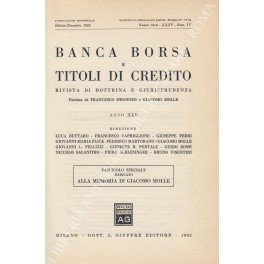 Banca borsa e titoli di credito. Rivista di Dottrina e Giurisprudenza. Fondata da Francesco Messineo e Giacomo Molle. Anno XLV. Fascicolo speciale dedicato alla memoria di Giacomo Molle