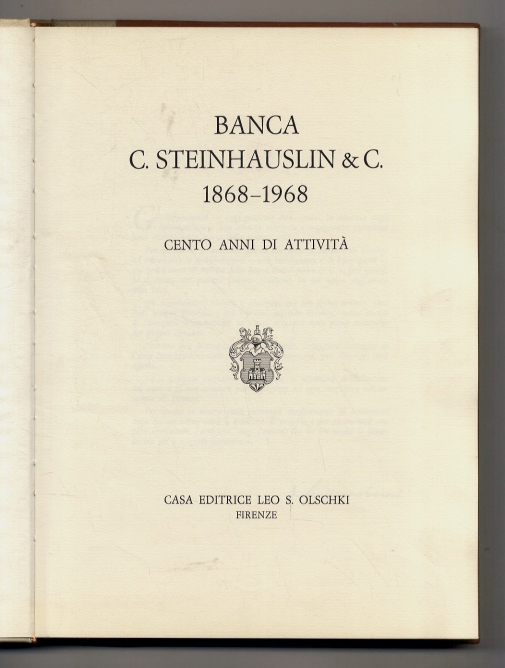 BANCA C. STEINHAUSLIN & C. 1868-1968 Cento anni di attività. Con scritti di P. Barile, G. Spadolini, P. Bargellini, G. Devoto ed altri.
