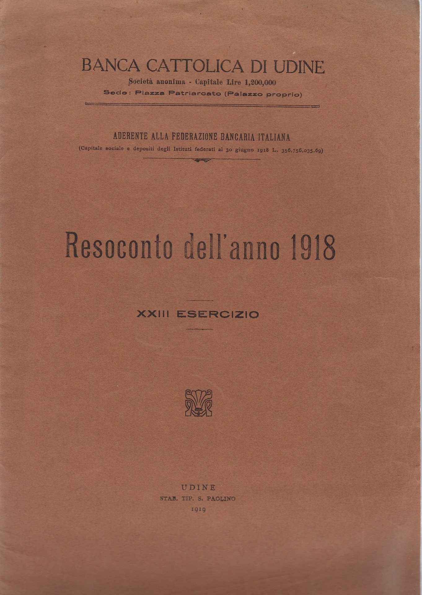 Banca Cattolica di Udine Resoconto dell'anno 1918