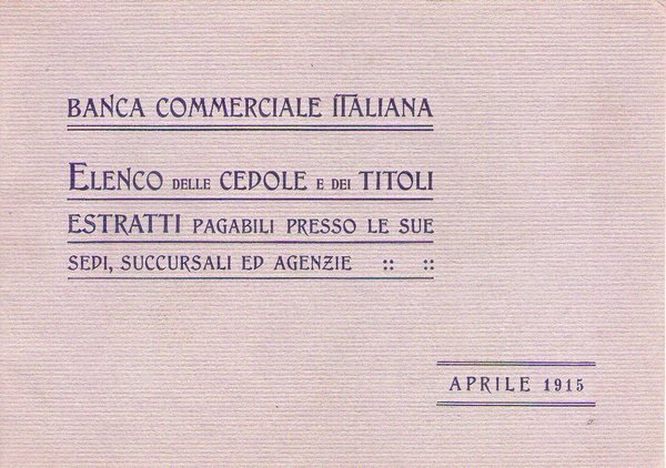 Banca Commerciale Italiana. Elenco delle cedole e dei titoli estratti pagabili presso le sue sedi, succursali ed agenzie