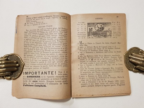 BARBA-NERA lunario per l'anno 1899. Moti celesti o siano pianeti sferici. Calcolati per tutta l'Italia e sue isole, per gran parte di Europa e in particolare pel grado 42 di Roma e 41 di Napoli per l'anno terzo dopo il bisestile 1899.