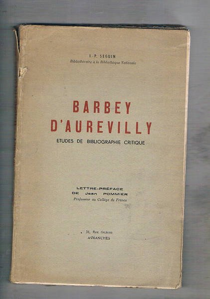 Barbey D'Aurevilly etudes de bibliographie critique. Lettre-preface de Jean Pommier.