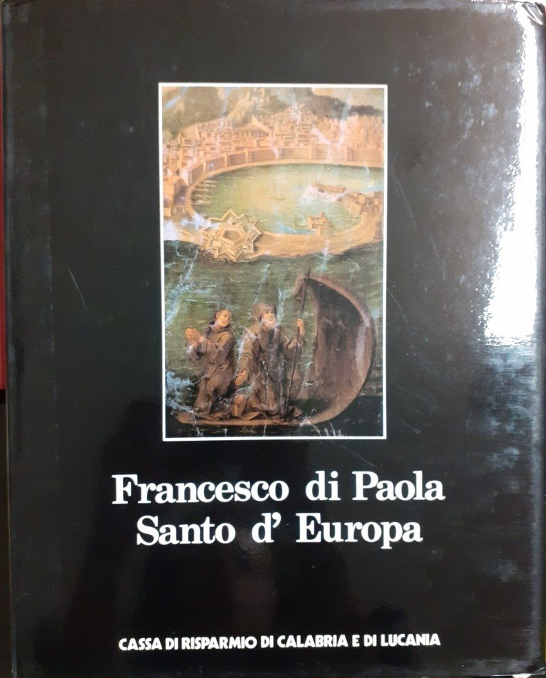 Francesco di Paola Santo d’Europa. Vita, opere e testimonianze iconografiche, ricostruite da Gino Barbieri, Michele Cordaro, Salvatore Scarpino, Cassa di Risparmio di Calabria e Lucania, s.l. (ma stampato nella Città del Vaticano, presso la Tipografia Poliglotta Vaticana) 1983, pp. 250, ill. b.n., testatine e finalini decorati b.n., 49 c. di tavv. ill. col., cm 31, legatura in tela ed. con titoli in oro al dorso, sovraccoperta e cofanetto in cart. ed. Edizione fuori commercio realizzata dalla casa editrice Effesette di Cosenza per conto della Cassa di Risparmio di Calabria e Lucania. Indice dei testi: Francesco Del Monte, Presentazione – Gino Barbieri, Santo d’Europa – Salvatore Scarpino, Da Paola a Tours – Michele Cordaro, Le testimonianze iconografiche – Michele Cordaro, Le immagini (schede iconografiche). Leggere tracce d’uso al cofanetto, per il resto ben conservato.
