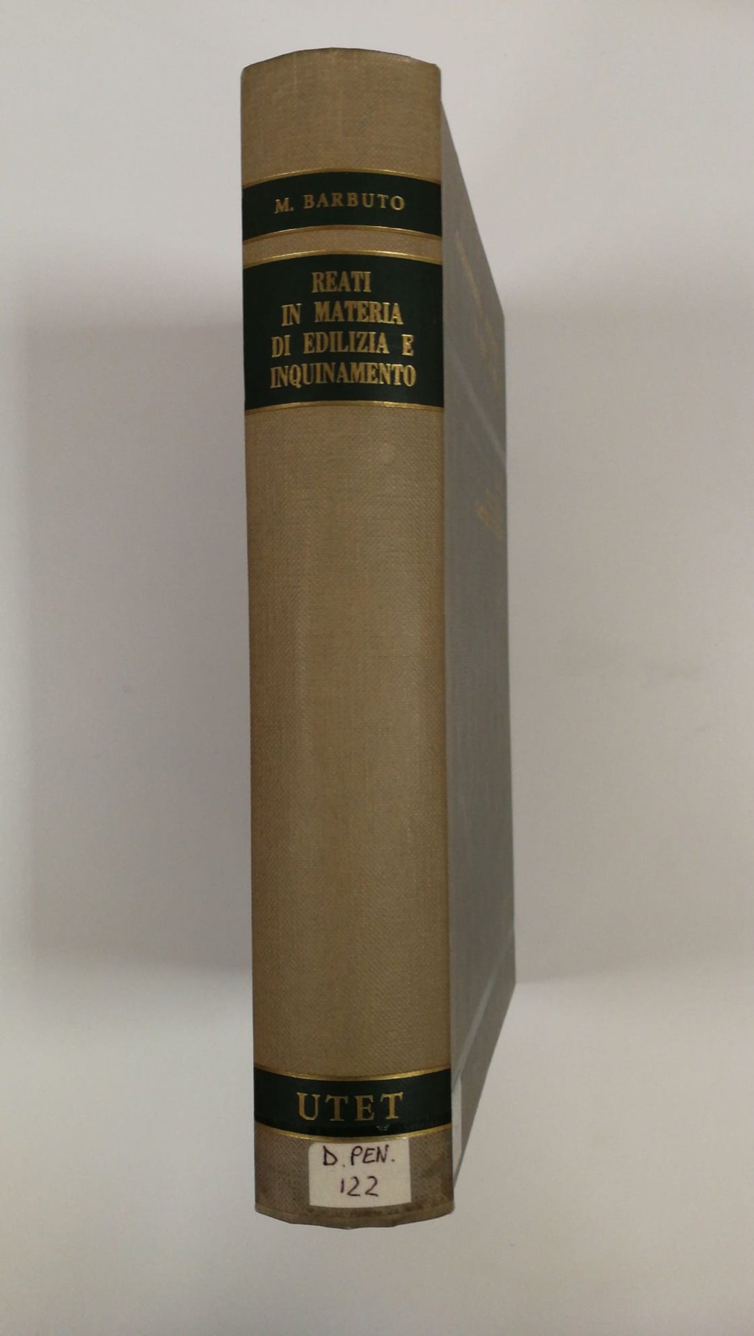 Barbuto Mario Barbuto Mario. REATI IN MATERIA DI EDILIZIA ED INQUINAMENTO. UTET, 1987. Torino, UTET 1987 italiano, in ottavo pp.471 20454