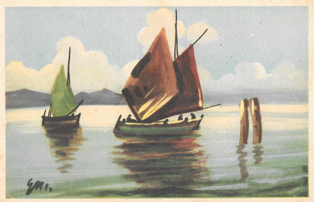 Barche sul mare (pittorica). non viaggiata, stampa 1942