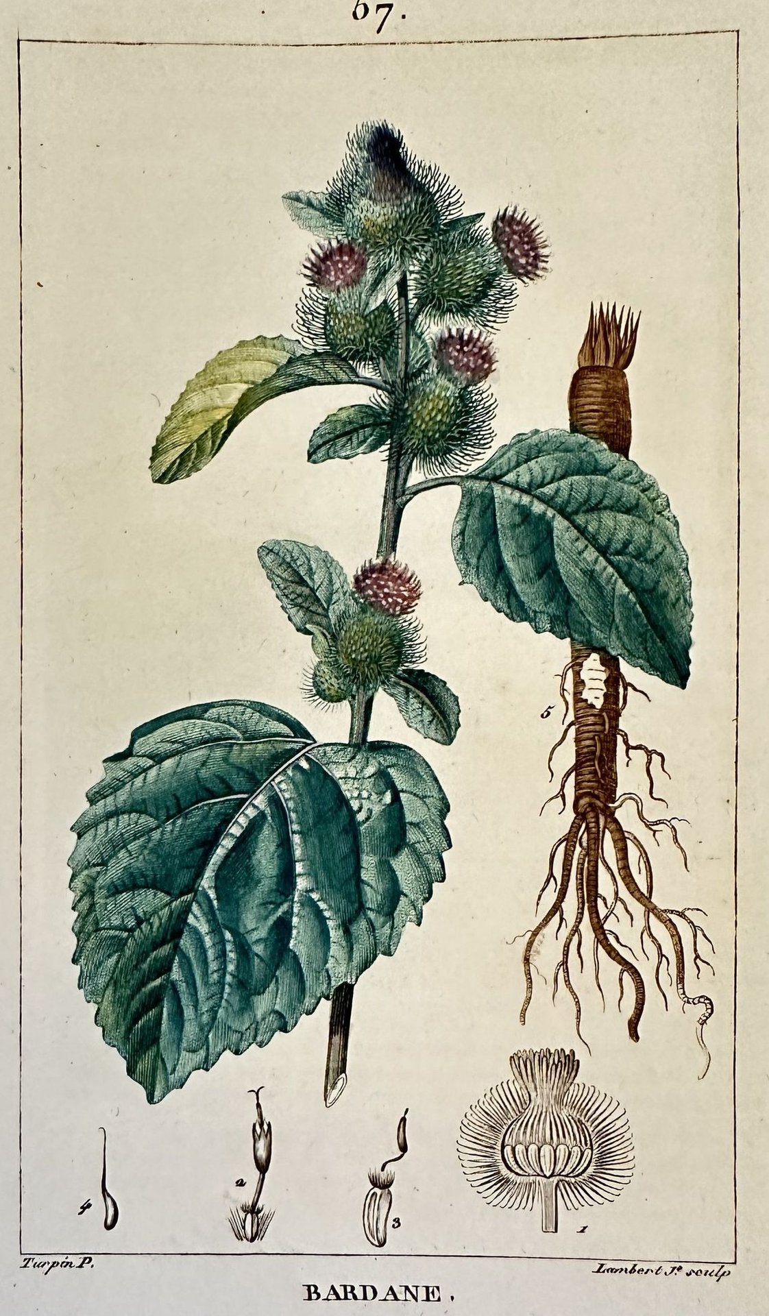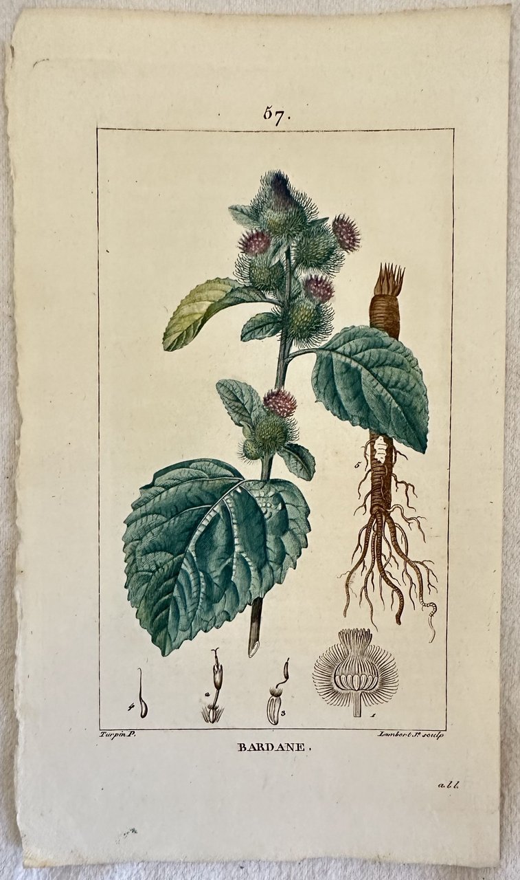 INCISIONE: Litografia con coloritura coeva all'acquarello AUTORE: Lambert su disegno di Turpin ATLANTE: Flore medicinale - Paris, Panckoucke 1814 DIMENSIONI FOGLIO: cm 21,5x12,5 DIMENSIONI INCISIONE: cm 15,5x9 EPOCA: 1814 CONDIZIONI: buone condizioni Quest'opera imponente era corredata da centinaia di incisioni che rappresentavano tutto il mondo animale e vegetale. L'opera deriva da un eccellente lavoro di luminari del XVIII secolo supportati dal Re francese Louis XV in seguito guidati dallo stesso Turpin, considerato al tempo il più grande incisore di botanica. La maggior parte delle incisioni sono firmate Turpin & Pretre. Carta bianchissima e resistente di ottima qualità.ENGRAVING: Lythograph with coeval colouring with acquarello painting AUTHOR: Lambert after Turpin ATLAS: Flore medicinale - Paris, Panckoucke 1814 SIZE OF PAGE:cm 21,5x12,5 SIZE OF THE ENGRAVING:cm 15,5x9 PERIOD: 1814 CONDITIONS: good conditions This imponent work was made up of different volumes and contained hundreds of engravings that represented all the plant and animal kingdom This work derives from an excellent work of luminaries of the 18th century supported by the french King Louis XV and then directed by the same Turpin that was considered as the greatest botanical engraver of his time. Very white strong paper of good quality