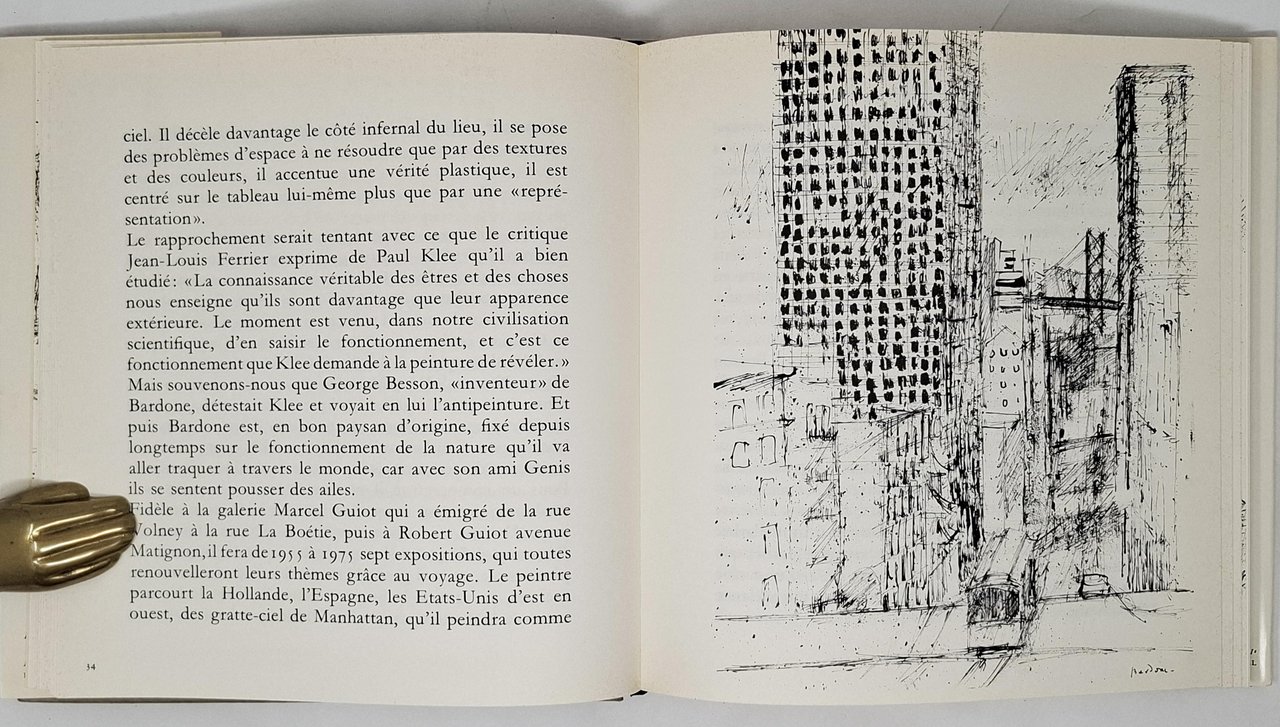 Serie: la bibliotheque des arts, Paris VI°.Lingua del testo: francese. Pagine: 192. Formato: 25,5 X 27 cm circa. Stato di conservazione: minuscolo strappetto senza mancanza sulla sovraccoperta (margine superiore del dorso) ma, comunque, ottimo esemplare. Volume pari al nuovo. Copertina cartonata rigida in tutta tela con sovraccoperta illustrata a colori. Opera ricchissima di tavole a colori e in nero delle opere di Bardone. Il volume è impreziosito, sulla prima pagina, da una dedica autografa dell'artista (a penna nera) datata dicembre 1976.