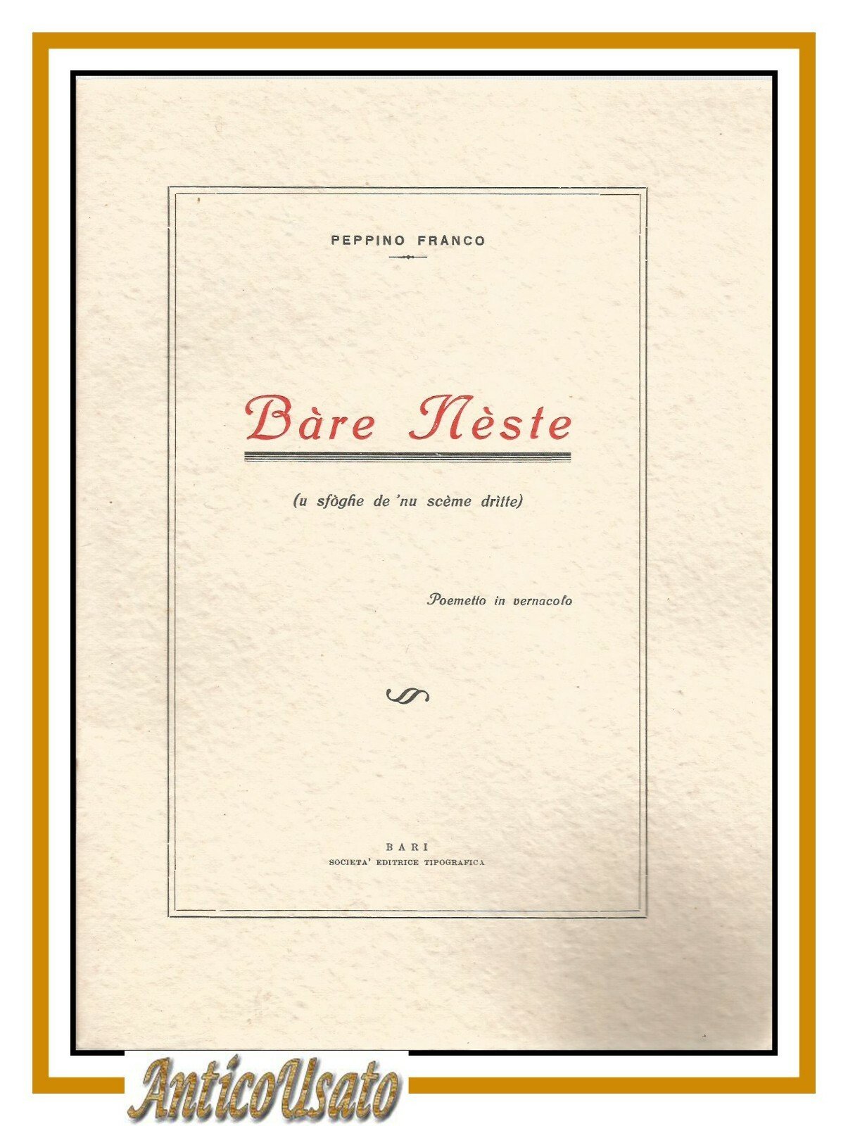 BARE NESTE di Peppino Franco poemetto vernacolo dialetto barese Bari Autografo